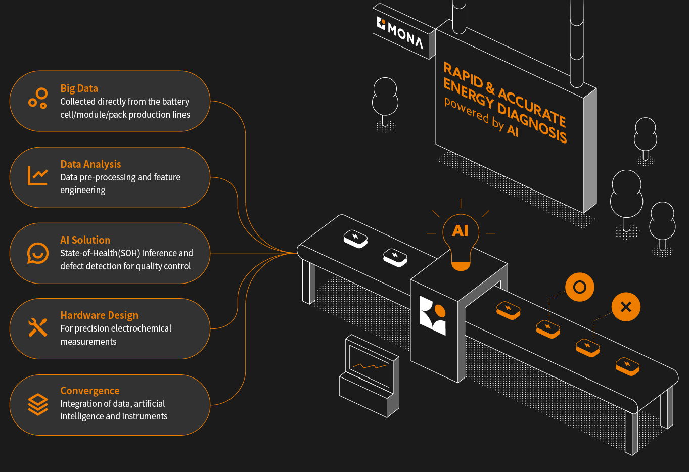 피지컬 AI 기반 진단 기술로 제조 품질을 개선하고, 전기차·ESS·연료전지 등 전 분야에서 적용 가능한 진단 솔루션을 제공합니다